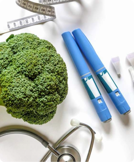 Prevenção e tratamento do Diabetes tipo I e II, incluindo manejos de monitoramento glicêmico.